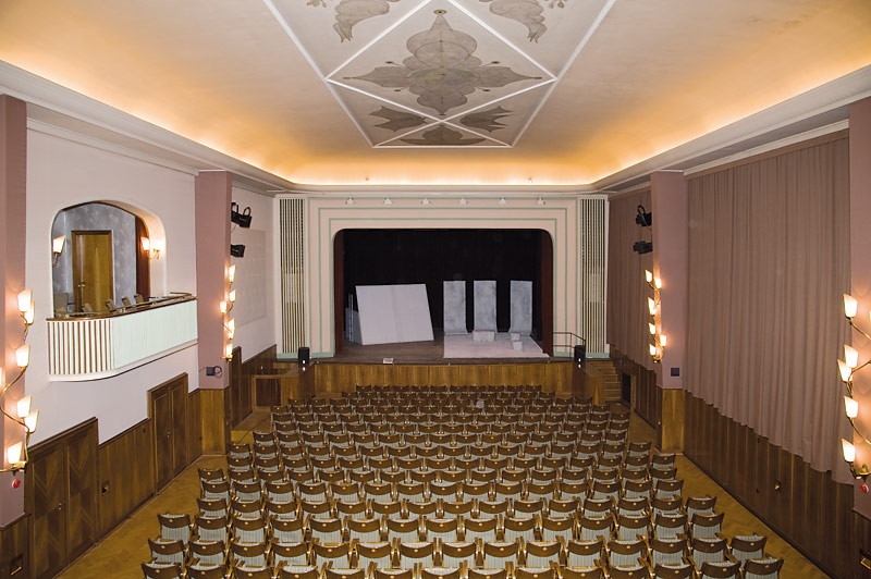 Kernstück ist der große Saal im Obergeschoss, wie er in seiner Schönheit weit und breit noch nicht gesehen wurde. Unter Anwendung neuester technischer Errungenschaften – die Bühne kann per Wasserdruck gehoben und gesenkt werden – ist ein Werk entstanden, in dem Geist und Kultur eine hervorragende Pflegestätte finden werden. Der Saal fasst rund 430 Besucher, die leicht gewölbte Stuckdecke schmücken Malereien des Siegener Kunstmalers H.R. Köhler, die Symbiose von Technik, Kunst und Kultur darstellend. Gegenüber der großen Bühne von acht mal zwölf Metern befindet sich eine geräumige Empore, an der linken Seitenwand eine Loge.
